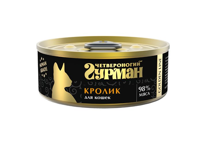 Четвероногий Гурман Golden line Кролик влажный корм для кошек жестяная банка 0,1 кг