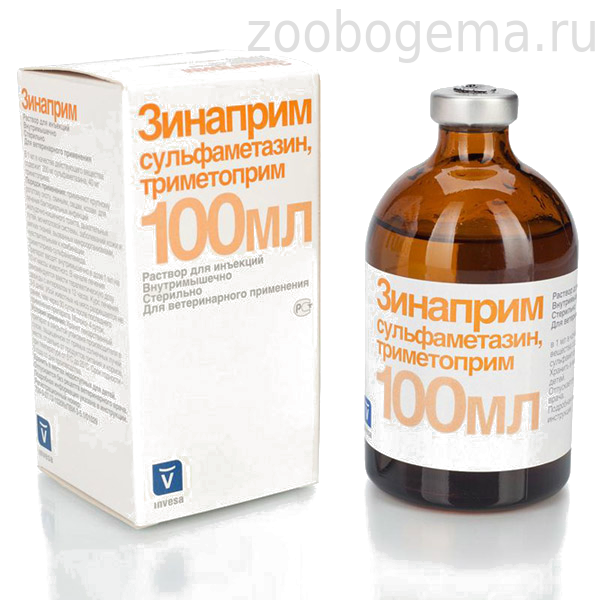Показания к применению: Зинаприм применяют для лечения крупного рогатого скота, мелкого рогатого скота и свиней при инфекционных заболеваниях желудочно-кишечного тракта (диарея, энтериты, колибактериоз), респираторного тракта (атрофический ринит, гемофилезная плевропневмония), мочеполовой системы (нефриты, уретриты), а также при поражениях кожи и мягких тканей, вызванных микроорганизмами, чувствительными к комбинации сульфаметазин-триметоприм.