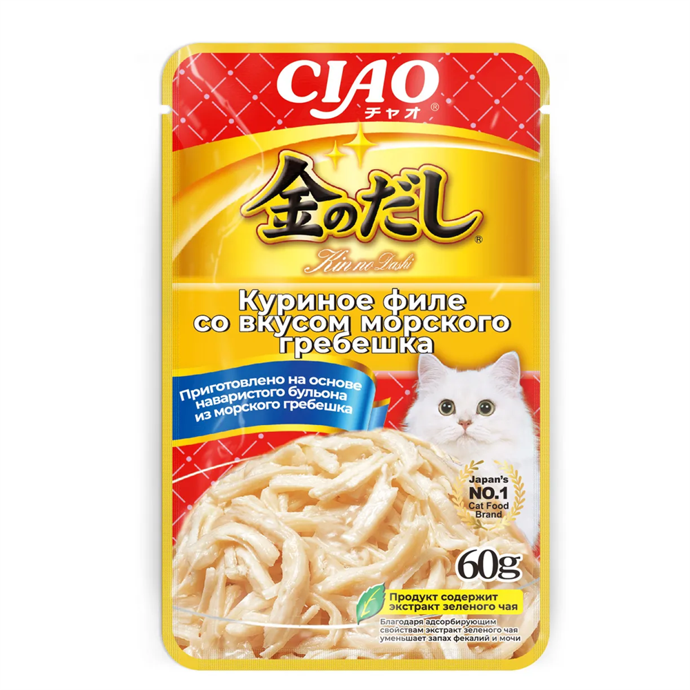 INABA ЧАО Куриное филе с морским гребешком влаж. корм д. кош., 85 г