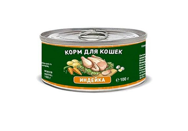 Консервированный полнорационный корм для кошек SOLID NATURA Holistic formula GRAIN FREE «Индейка» Состав: филе индейки, желирующая добавка, таурин, вода. Пищевая ценность100 г. продукта: сырой протеин, не менее-10,0 г; сырой жир , не более- 12,0 г; сырая зола, не более 2,0 г; таурин-0,3 г; массовая доля поваренной соли-0,4-0,6 г; влага, не более-82%. Минеральные вещества в 100 г. продукта: общий фосфор, не более-0,4 г; кальций, не более-0,3 г; Энергетическая ценность в 100 г. продукта-138,0 ккал. Масса нетто: 340 и 100г Срок годности - не более 3 лет со дня изготовления. Условия хранения: при температуре от 00С до 25 0 С и относительной влажности воздуха не более 75%. Рекомендуется употреблять при комнатной температуре. После вскрытия потребительской упаковки продукт хранить в холодильнике не более 2 суток. Суточная норма 30-50 г. на 1 кг. веса животного.